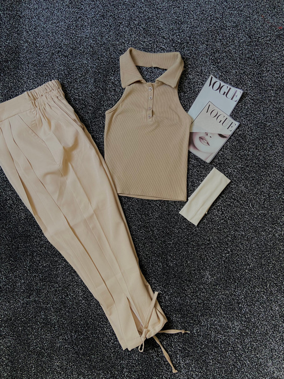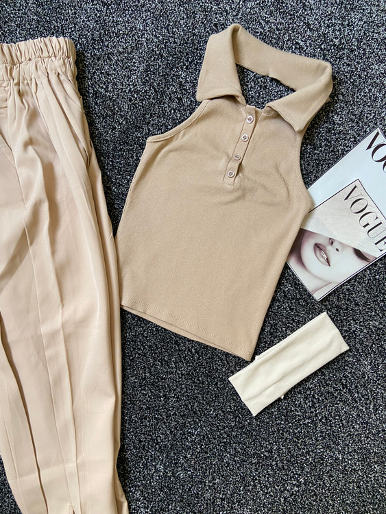 کراپ یقه دار پشت باز + شلوار پیله دار مازراتی + هدبند کبریتی