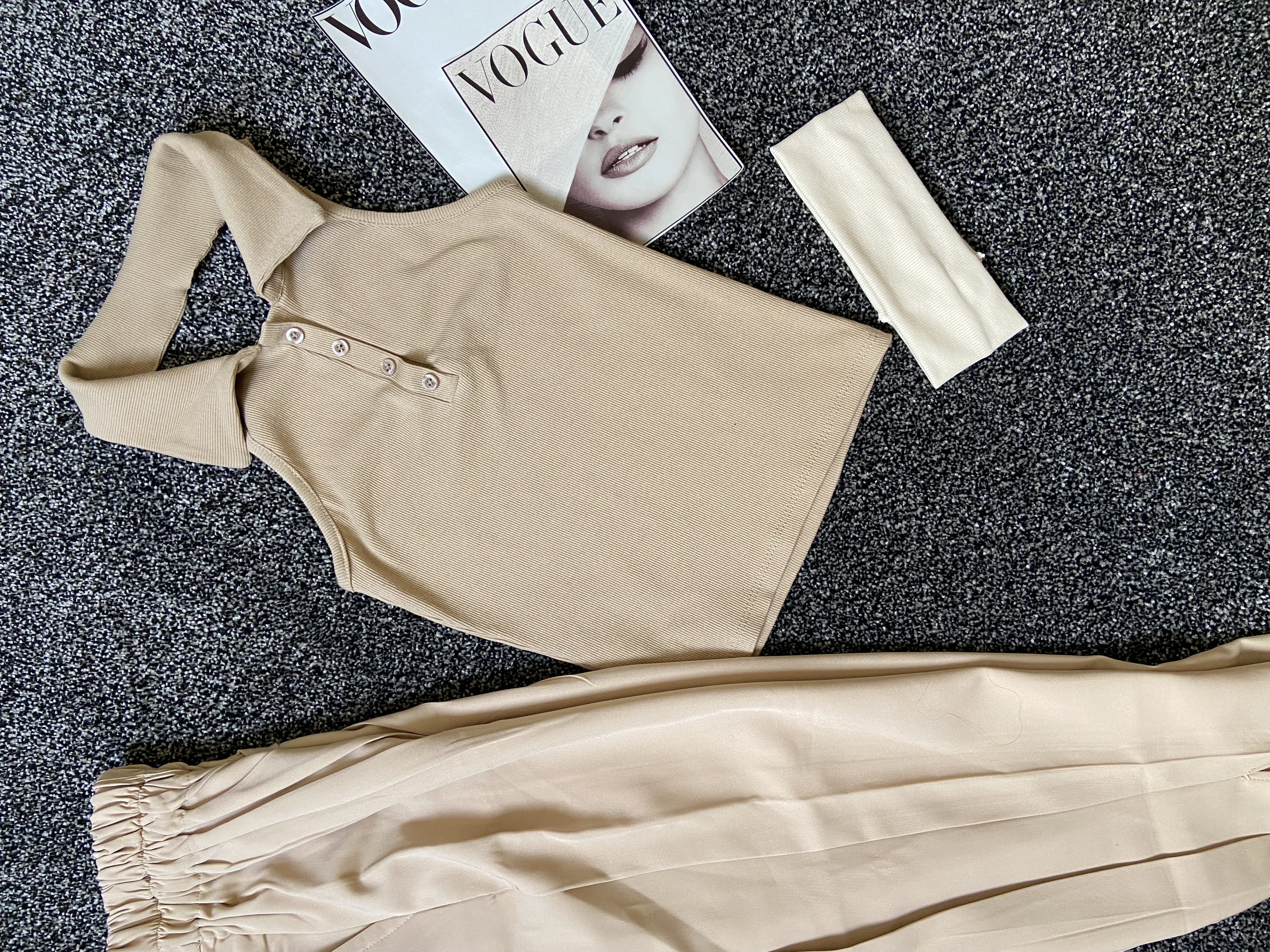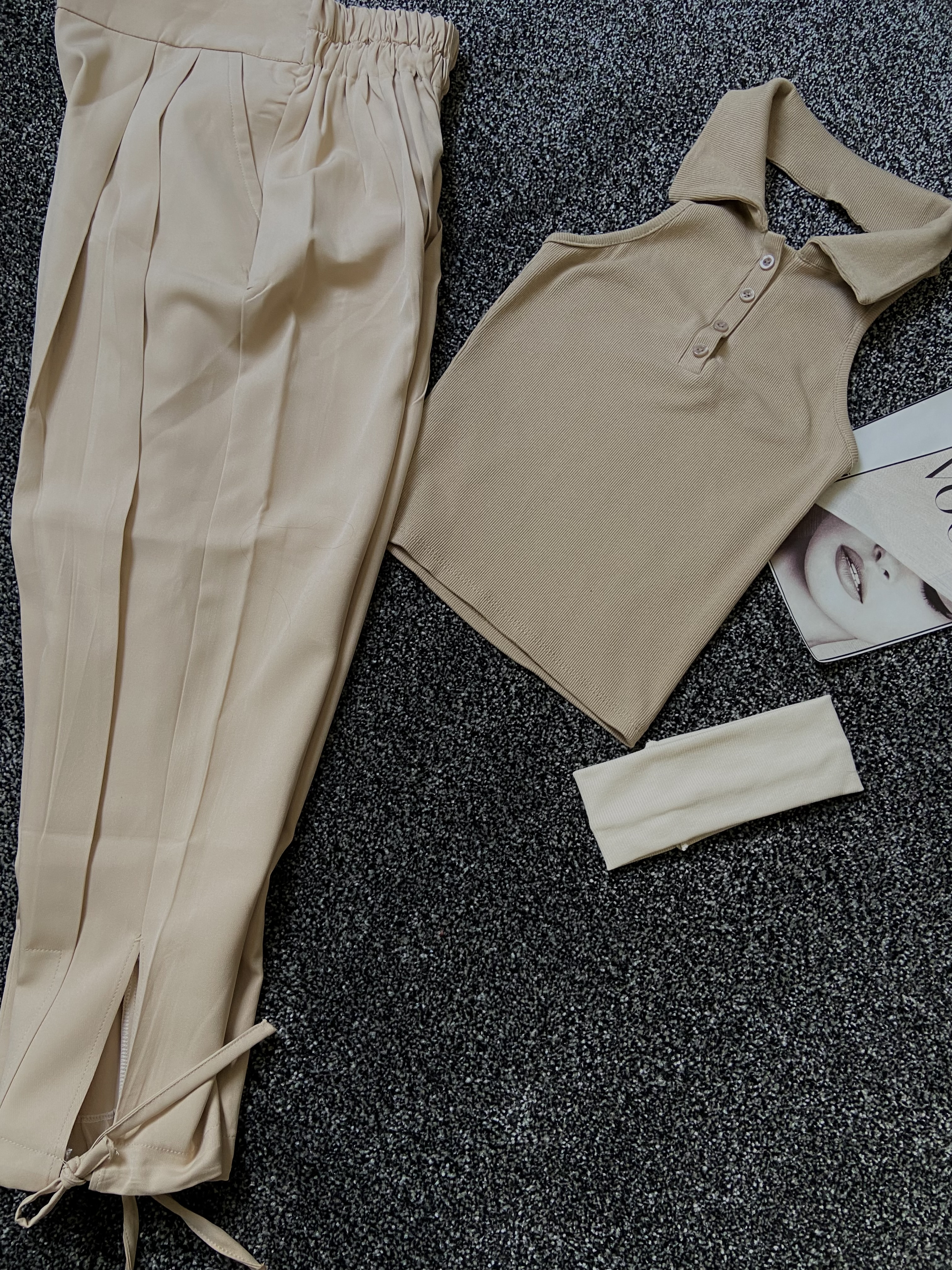 کراپ یقه دار پشت باز + شلوار پیله دار مازراتی + هدبند کبریتی